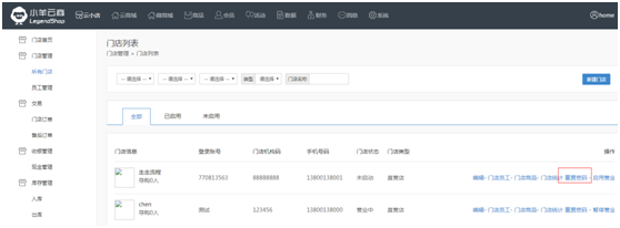 找到对应的门店直接重置密码