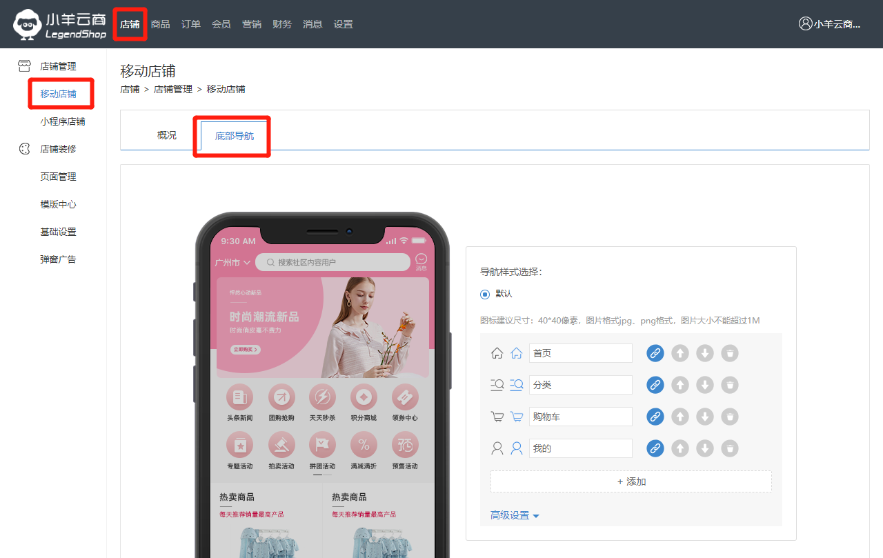1.底部导航能够有效帮助粉丝跳转到各个关键页面,是整个店铺的“指南针”;