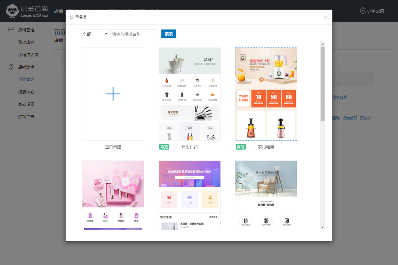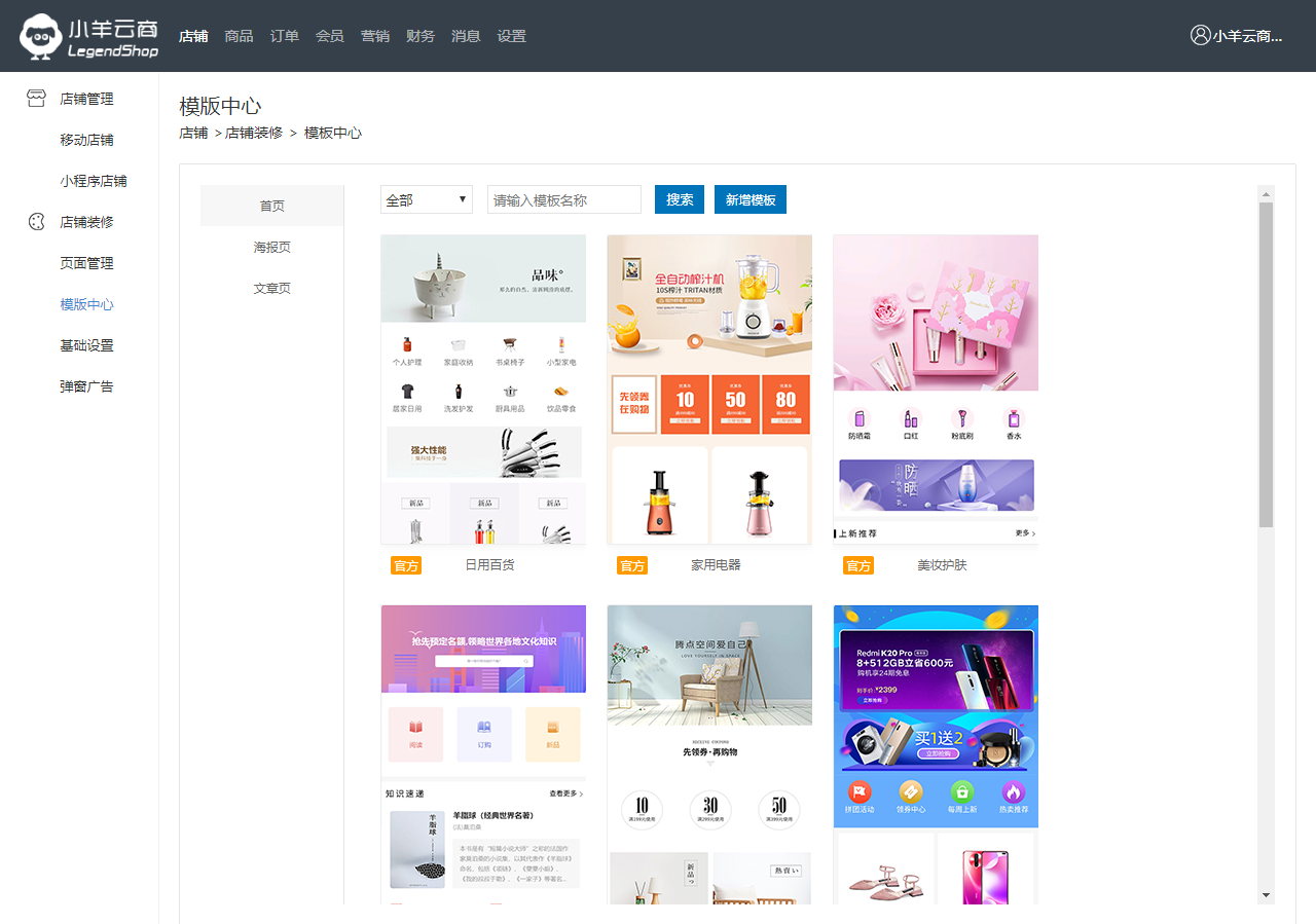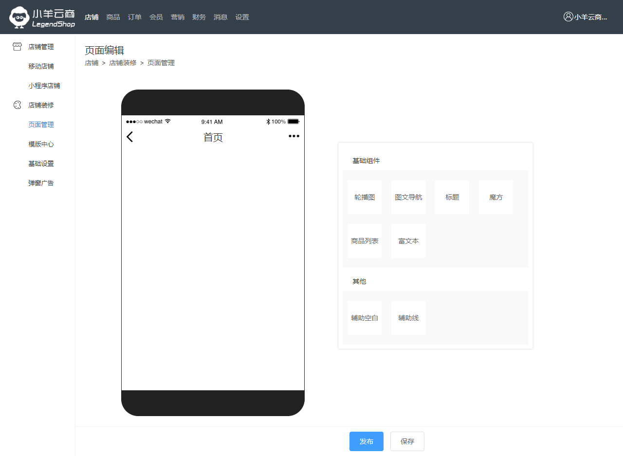 1. 小羊云商页面是可以自定义编辑的,可将首页分类下的页面设为店铺主页;