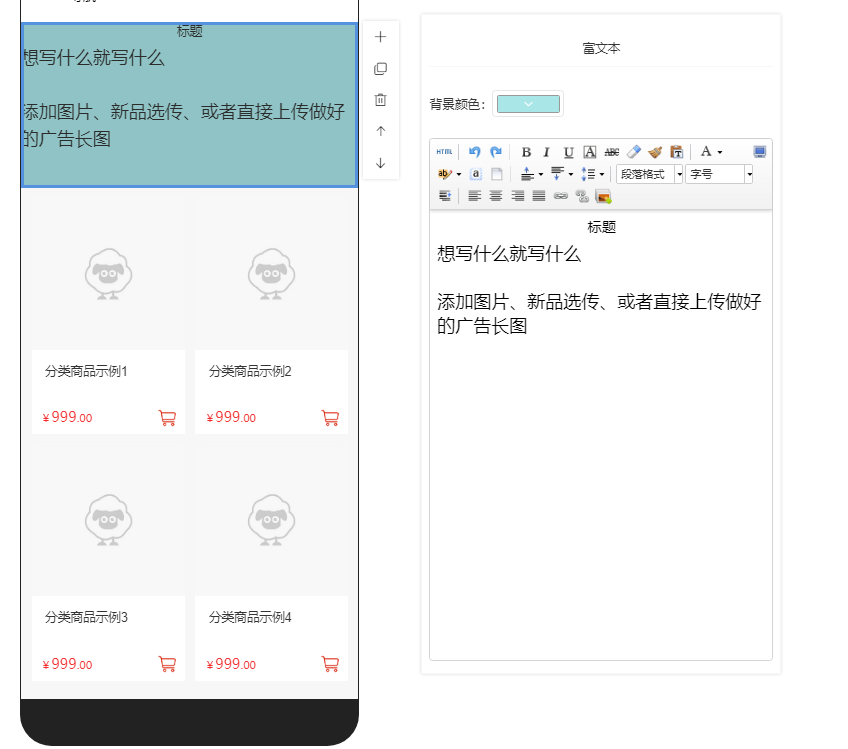 5.富文本:编辑文字图片,一般用于商家的宣传广告,也可以直接上传做好的宣传广告长图。