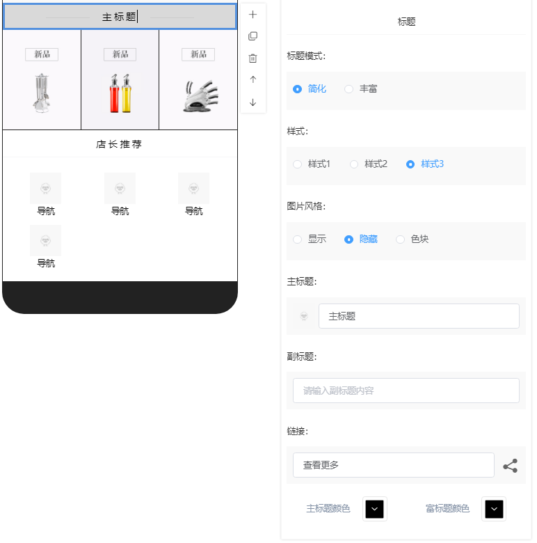 2.标题:一般为摆列下一个不同商品或者内容时设置的内容,可创建点击进入的链接