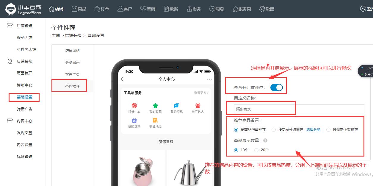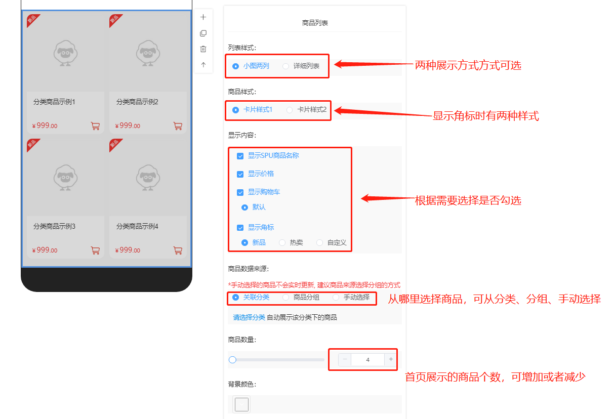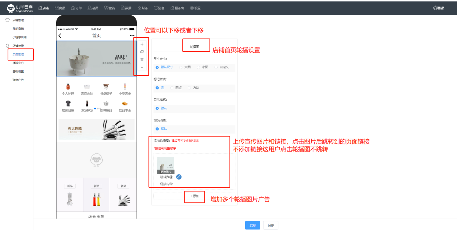 对应的设置页面如下图,商家在正式使用之前,建议设计一个良好的展示方式,给用户有一个好的购物体验。