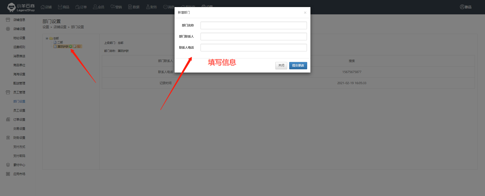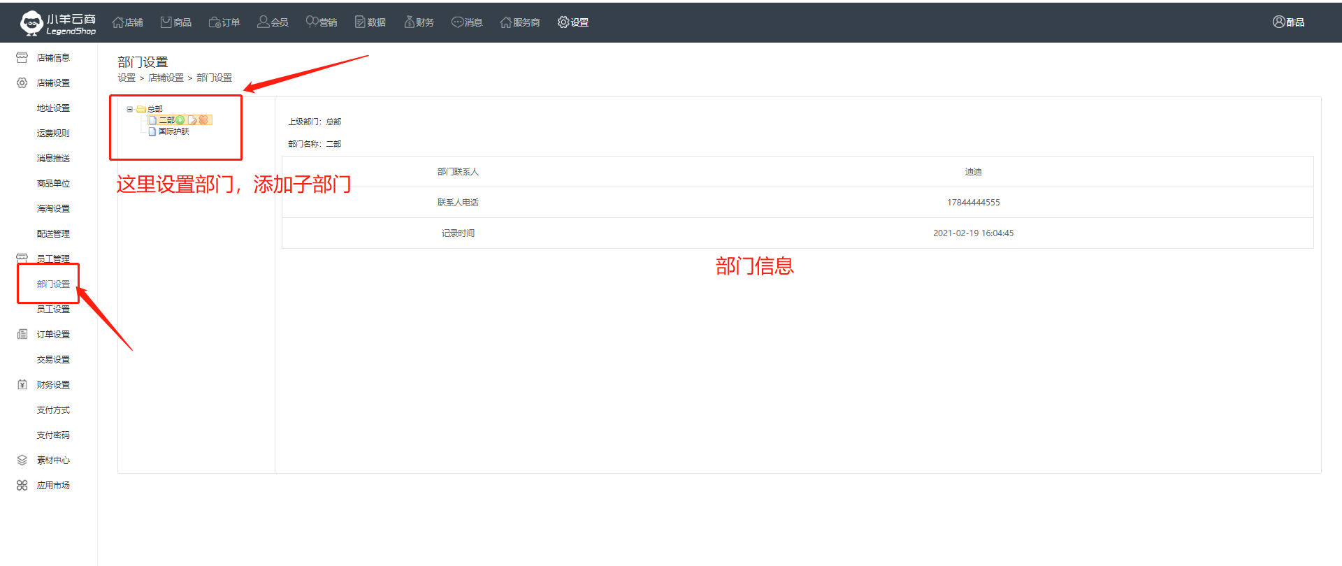 商家在添加自己员工时,需要先进行部门创建和管理,商家可以创建多个部门,一个部门也可以创建多个子部门。创建完成后,添加员工时就可以选择相应的部门。