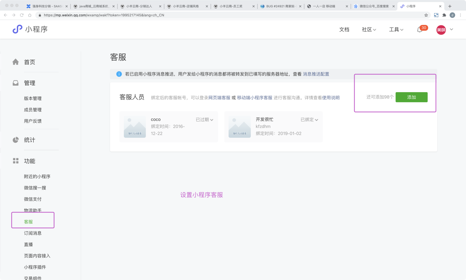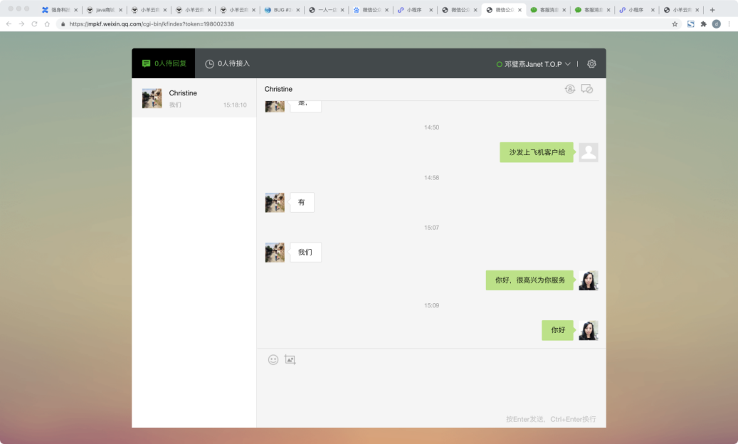 新建客服后,扫码登录,或者登录PC后台客服。 现有的小程序分配制度在PC端可以配置, 包括自动回复也可以配置。