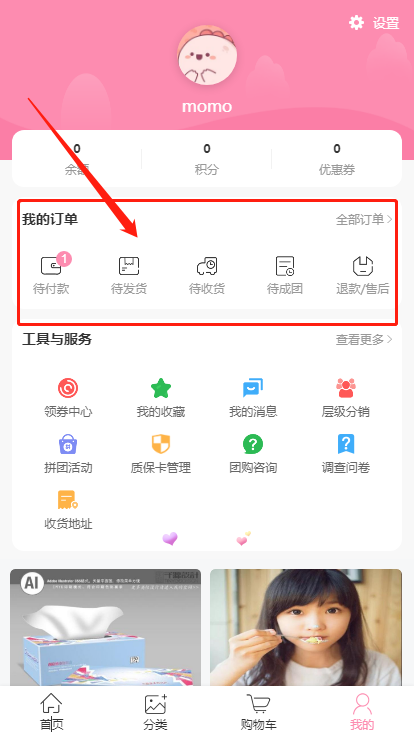 用户购买方式有三种:在首页或者分类页直接点击进入商品详情购买,或者将商品添加进入购物车就可以结算买单。