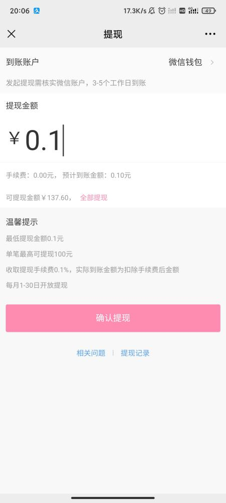 在商家开放提现日期内,分销员有可提现的金额时可进行提现申请,申请成功的前提是符合商家设置的提现规则:符合最低提现金额,符合提现倍数,在最高提现金额限制内。
