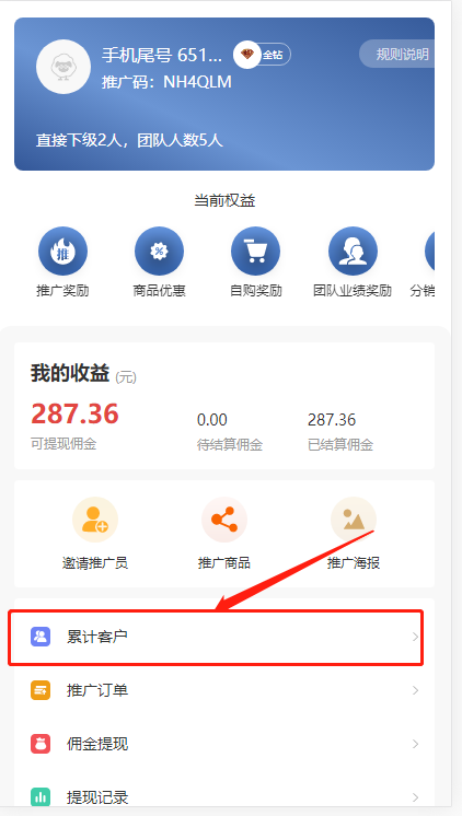 已结算金额:成为分销员累计获得的已结算的分销佣金,包括未提现的和已提现的金额。