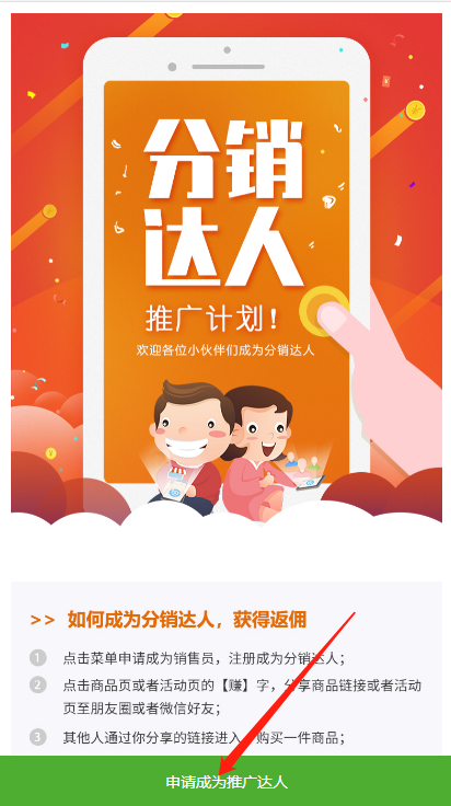 申请成为时:分销员需要申请,商家审核通过后,才可以点击进入。
