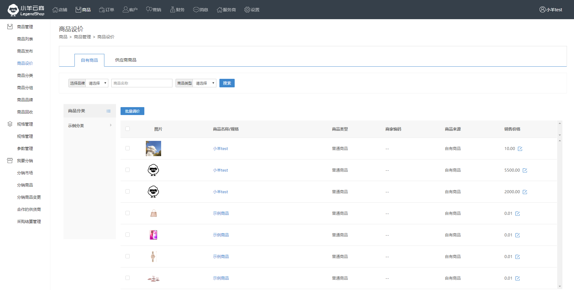 1)批量调价:选择多个商品后,能进行批量调整商品价格;