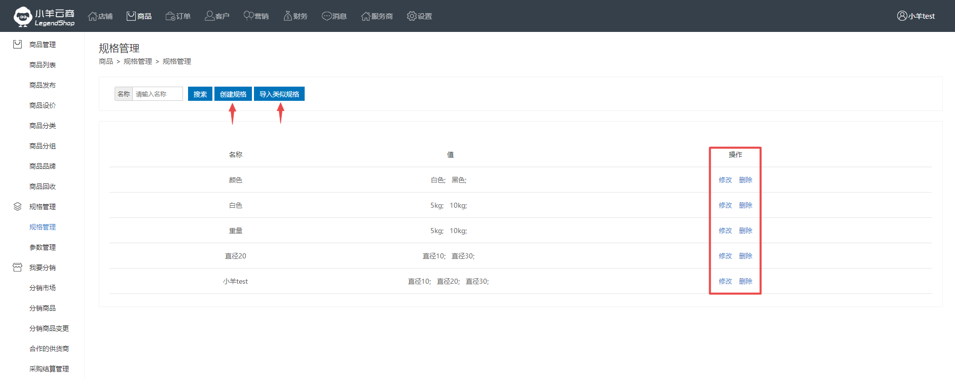 商品--规格管理--规格管理