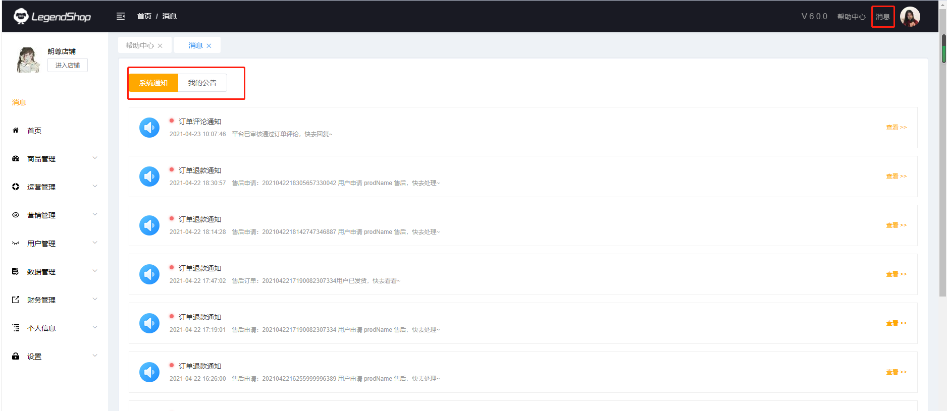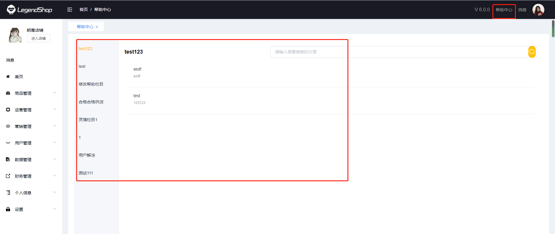点击帮助中心,显示所有内容,帮助中心内容在平台由管理员设置,详情见商城管理-帮助反馈-帮助栏目。