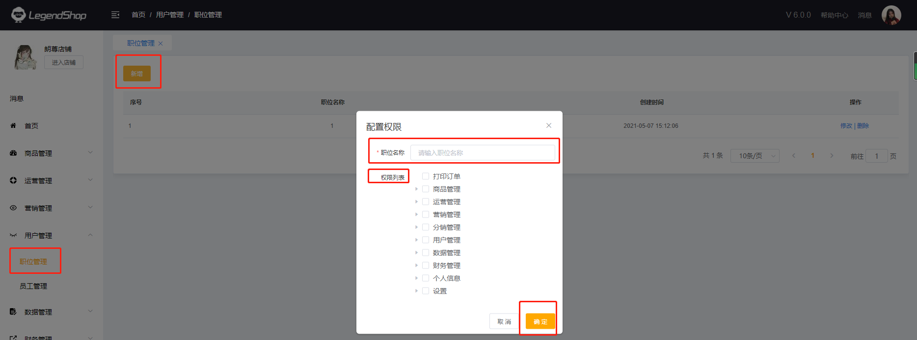 步骤2:点击“员工管理”,点击“新增员工”,填写该员工的账号信息,选择该员工的职位为A,那么该员工即可拥有步骤1中所勾选的所有的权限。