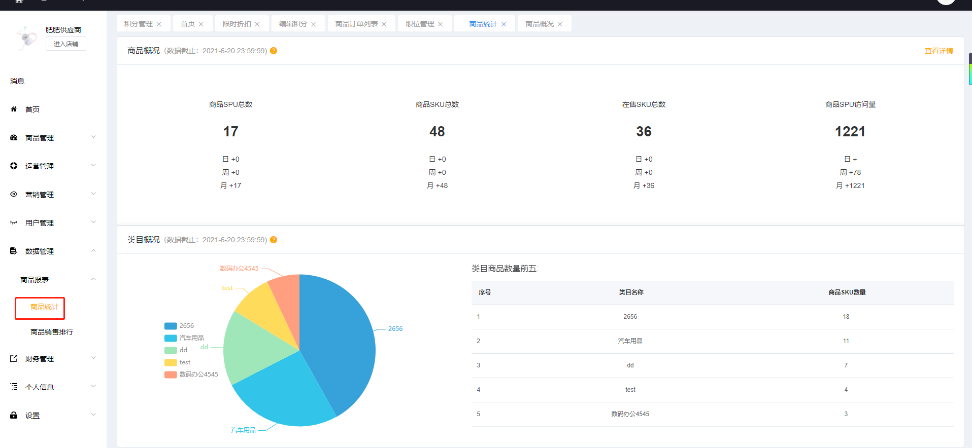 (1)商品统计:统计商品的数量 并能查看详情数据