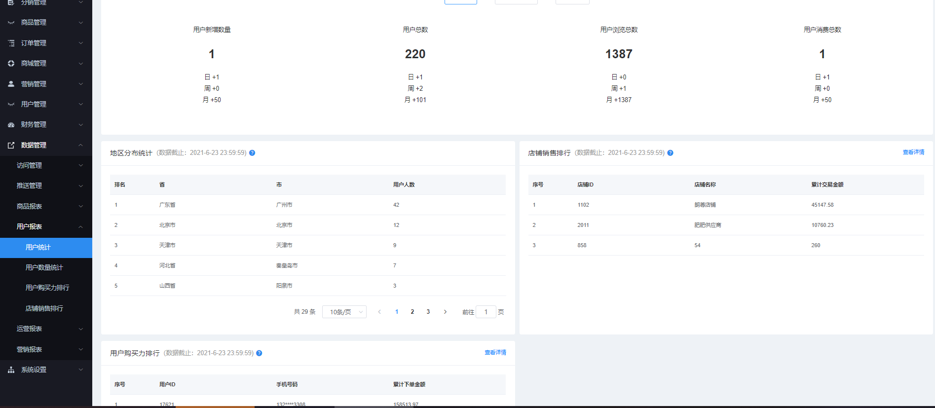 该页面统计所有登录用户,能通过用户ID、最后登录时间进行搜索,可点击“重置”清空搜索条件