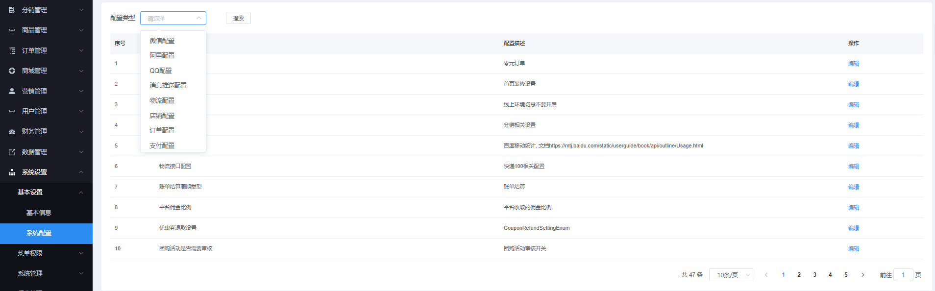 该页面管理首页的配置,能根据选择配置类型进行搜索,可进行修改配置。