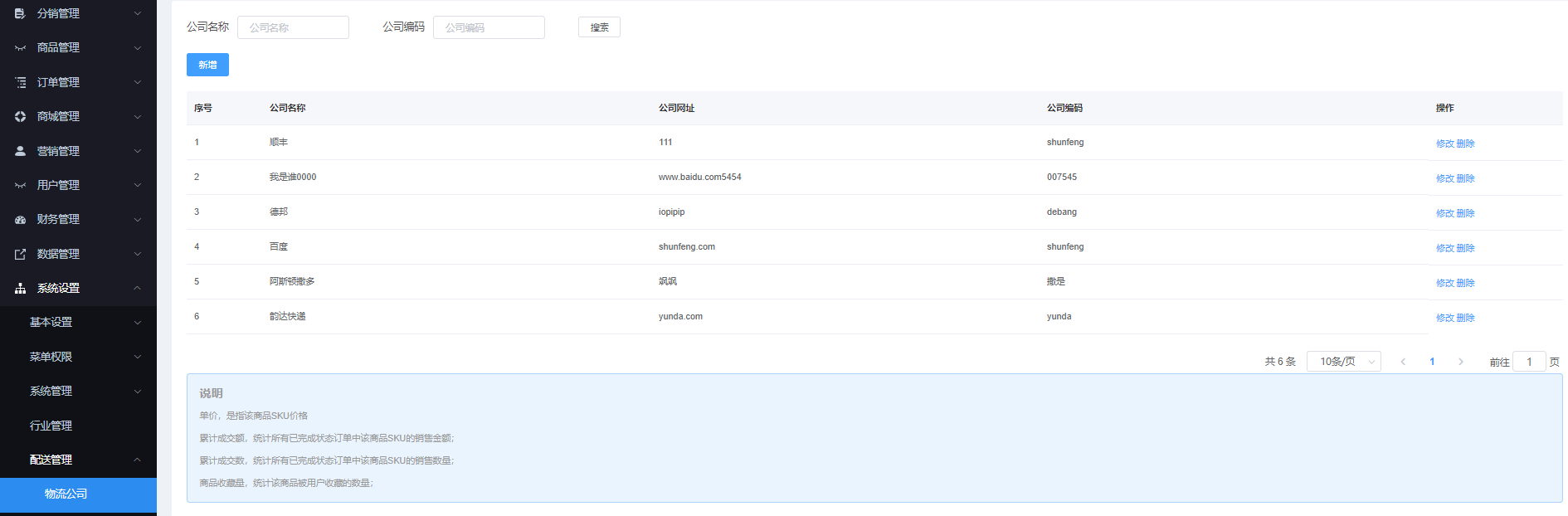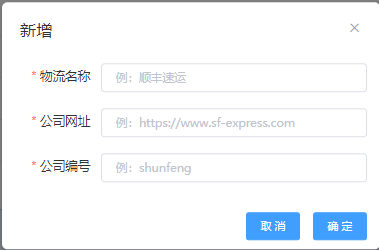 动作:点击“新增”-输入“物流公司名称”-输入“公司网址”-输入“公司编号”