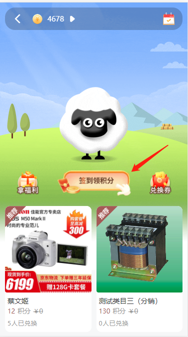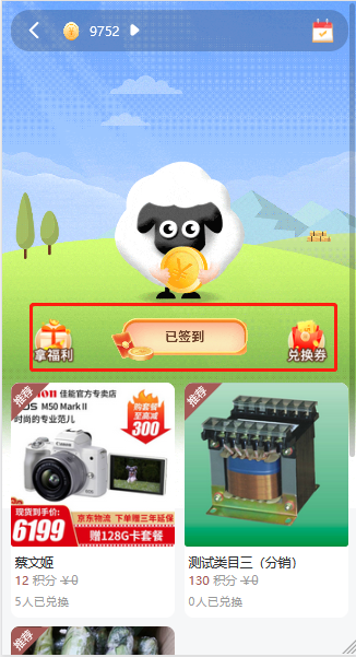 签到领积分:每天签到可领取积分兑换“积分商品”或抵扣金额