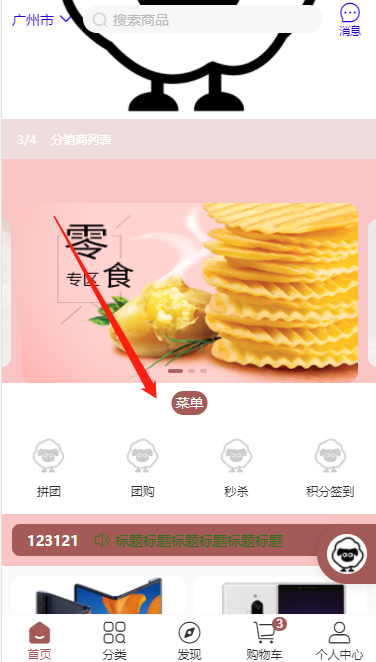 进入首页点击菜单可进入活动详情页面参与营销活动