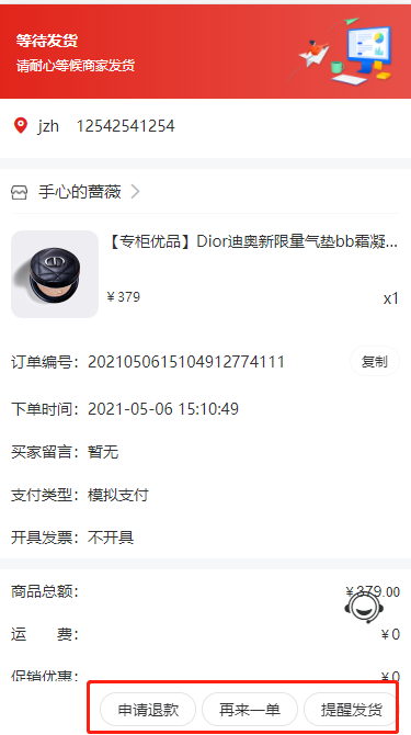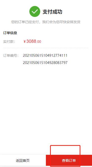 完成支付后跳转到支付成功页,可查看订单信息。下图所示: