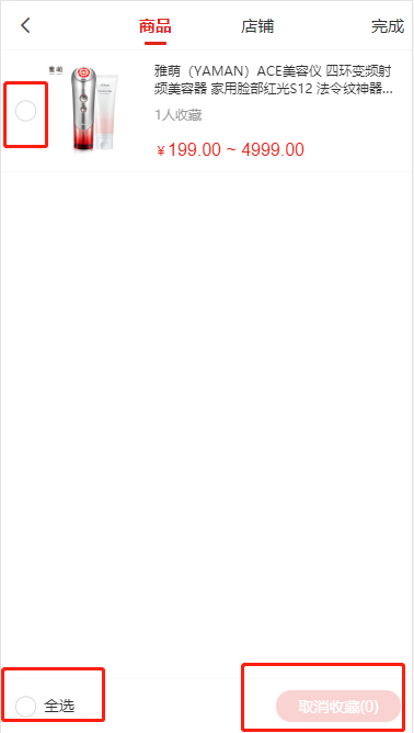 进入收藏页,这里显示收藏的商品和关注的店铺。可以编辑取消关注、收藏。