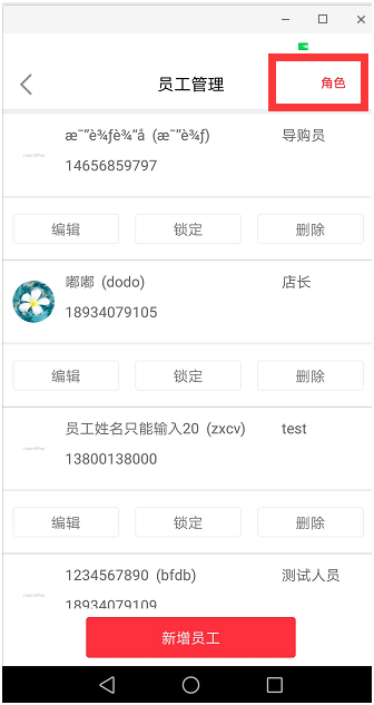 1、登录小羊导购主账号,进入员工管理页面,点击“角色”。