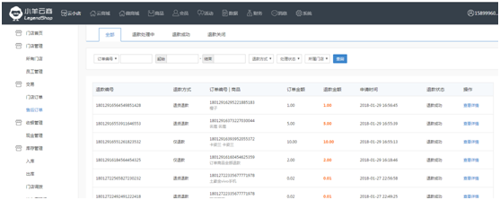 2. 商家可通过多种条件查询筛选退款申请单,各项筛选条件说明如下